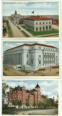 3 Vintage Cards, Denver, CO, "St Anthony's Hospital, US Mint & State Capital &..