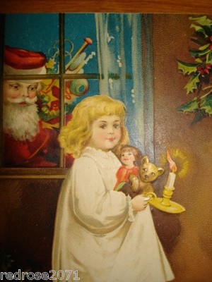 CLAPSADDLE OLD HOLIDAY CHRISTMAS postcard SANTA Little Girl KID Teddy Bear DOLL