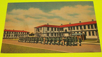 Vintage Linen Parris Island Post Card USMC. Preparing To Wash Clothes