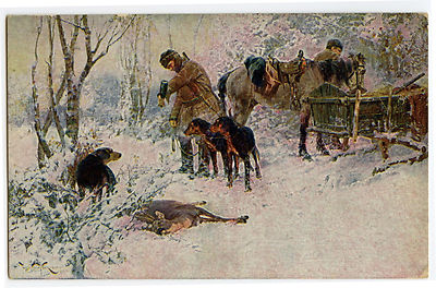 Title (ebay affiliate link): Yaroslav Vesin painting - Nach der Jagd 1911 (After the Hunt)