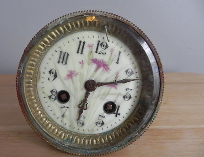 Title (ebay affiliate link): Antique Early 1900's French Mantel Clock Brass Movement Porcelain Face Bezel