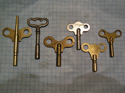 6 ANTIQUE OLD CLOCK KEYS