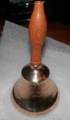 Brass School Teacher Wood Hand Bell Engraved Retirement Memento