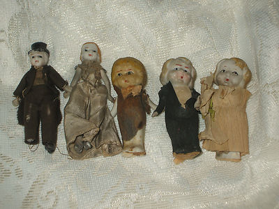 5 QUIRKY ANTIQUE BISQUE FROZEN CHARLOTTE DOLL FLAPPER & BRIDE & GROOMS