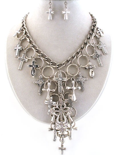 Title (ebay affiliate link): ANTIQUE SILVER CROSS RHINESTONE JEWELRY NECKLACE SET