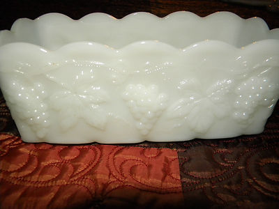 MILK GLASS *ANCHOR HOCKING GRAPE LEAF PLANTER/VASE DISH