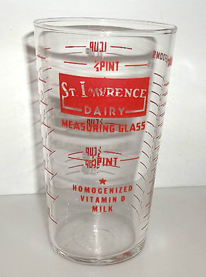 Title (ebay affiliate link): Vtg St Lawrence Dairy Measuring Glass PA Milk Measure Cup Red Pyro