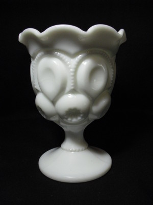 Title (ebay affiliate link): NR!! VERY RARE! WHITE MILK GLASS Moon & Stars Crimped Ruffle Footed Compote