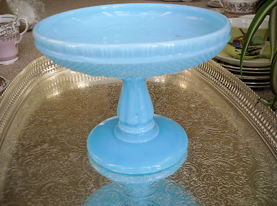 VINTAGE BLUE MILK GLASS fruit bowl stand pressed Glass