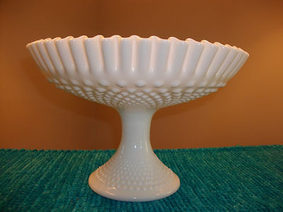 Fenton Milk Glass Hobnail Pedestal Fruit Bowl