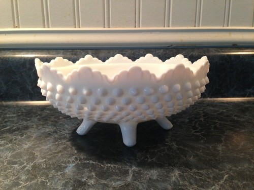 Title (ebay affiliate link): Vintage Fenton Oval White Milk Glass Hobnail Scalloped Covered Footed Candy Dish