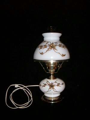 Title (ebay affiliate link): VINTAGE MILKGLASS LAMP WITH BRONZE FLOWER & LEAVES DESIGN-(3 WAY-SWITCH)
