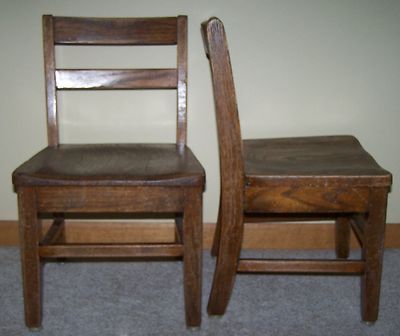Title (ebay affiliate link): 2 Vintage Preschool Children's Chairs Primitive Wooden School House Child