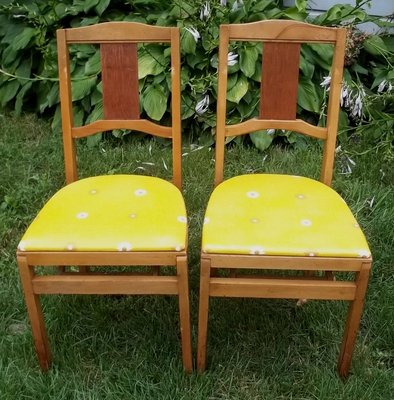 Title (ebay affiliate link): Vintage STAKMORE Wooden Folding Chairs DAISIES Mid Century Patio Dining Oak Eame