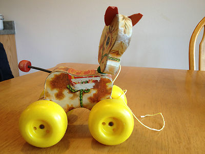 Title (ebay affiliate link): VINTAGE FISHER-PRICE PRANCY PONY WOOD PULL TOY #617, 1965