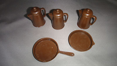 Johnny West Series 3 Coffee Pot Kettle, 2 Frying Pan - Vintage Marx Toys
