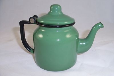 Title (ebay affiliate link): Green & Black Enamelware Child's 4" Teapot small mini tea kettle enameled metal