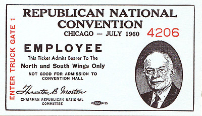 Title (ebay affiliate link): 1960 Republican National Convention EmployeeTicket Dwight D "Ike" Eisenhower