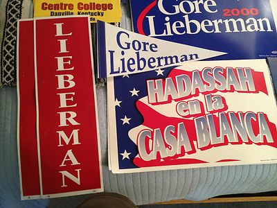Title (ebay affiliate link): 2000 Gore Lieberman Campaign & Debate DNC Convention Collectable signs posters