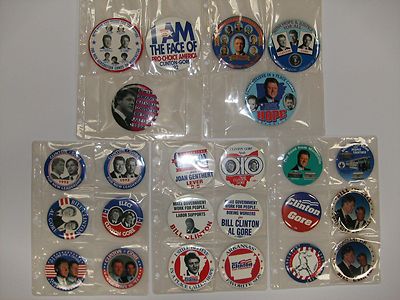Title (ebay affiliate link): Lot of 24 Bill Clinton Gore White House 3 - 4 inch Campaign Buttons Pinback