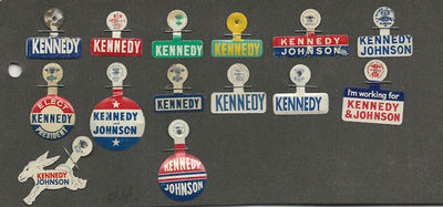 Title (ebay affiliate link): 24. LOT OF 14 POLITICAL METAL LITHO TAB ADVERTISING; KENNEDY, JOHNSON DEMOCRATIC