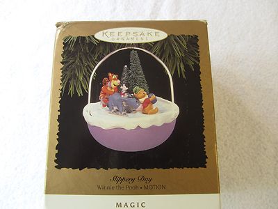 Title (ebay affiliate link): 1996 Slippery Day Winnie the Pooh Hallmark Ornament - Motion