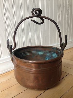 Title (ebay affiliate link): Rolled Rim, Antique Copper Cauldron Kettle Pot ~ Dove Tail and Handle Vintage