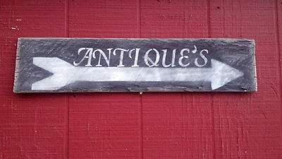 Primitive old early worn cabin antique wood sign farm barn wash arrow Antiques