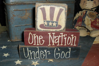 Title (ebay affiliate link): PRiMiTiVe AmEriCaNa ShELf SiTtEr BLoCks (ONE NATION UNDER GOD)