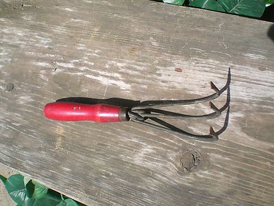 Title (ebay affiliate link): Antique Garden Tool Claws With Red Wood Handle, Vintage Handheld Garden Claws