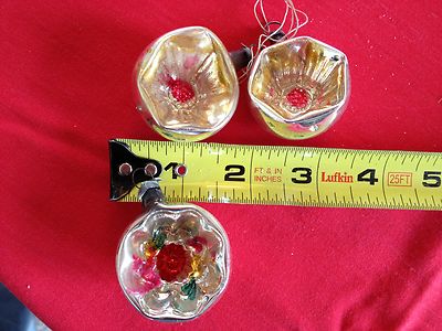 ANTIQUE Christmas 3 Ornaments Indents German Glass Feather Tree VTG Germany SM