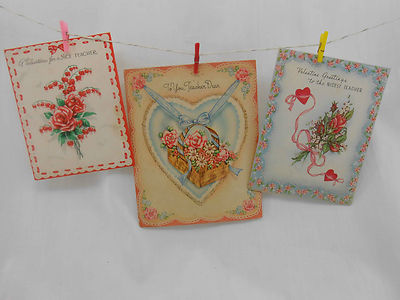 Title (ebay affiliate link): Antique Valentine Card Lot of 3 Teacher Vintage 1940s 1930s