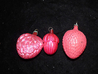 Lot 3 Antique Hand Blown Mercury Glass Ornament German Strawberry Acorn