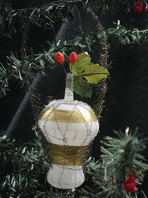 Title (ebay affiliate link): ANTIQUE/VINTAGE VICTORIAN GERMAN GLASS ORNATELY WIRED VASE W/SPUN COTTON HOLLY