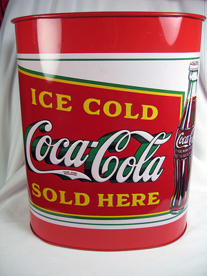 Title (ebay affiliate link): Coca Cola Metal Tin Coke Waste Basket Trash Can
