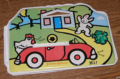 Title (ebay affiliate link): Vintage J & J Vinyl Baby Book Johnson & Johnson Squishy Plastic Play Book 1980