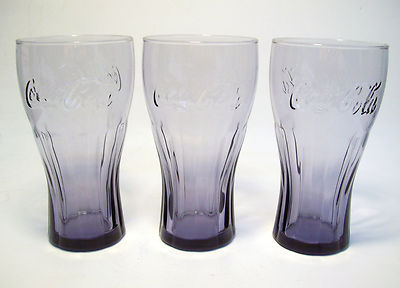 Title (ebay affiliate link): LOT OF 3 AMETHYST PURPLE 6" COCA-COLA COKE GLASSES - MINT UNUSED
