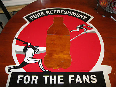 Title (ebay affiliate link): VINTAGE 1997 DOUBLE SIDED COCA COLA ADVERTISING SIGN BOTTLE CUT OUT BASEBALL FAN