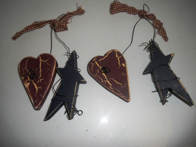 Title (ebay affiliate link): 2 Primitive Distressed Country Wooden Hearts & Stars - Fabric & Wire Hangers