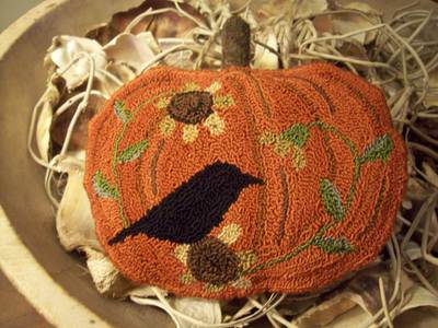 Title (ebay affiliate link): Primitive Punch Needle Hooked Rug Pumpkin Crow Sunflower Pillow Bowl Filler
