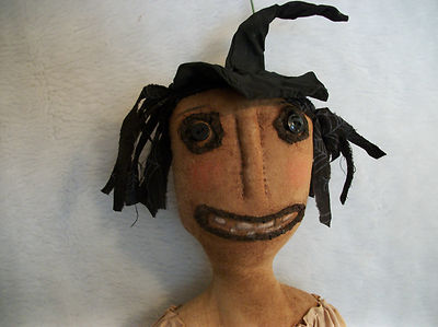 Title (ebay affiliate link): Primitive doll~Halloween Witch and frog Folk art~by~ Dumplinragamuffin