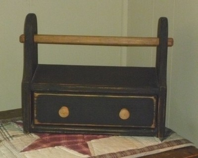 Primitive Black, Distressed Paper Towel Holder w/Drawer