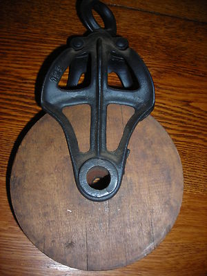 Title (ebay affiliate link): Antique Cast Iron & Wood Barn Hay Trolley Pulley Old Vintage Farm Tool