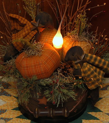 Title (ebay affiliate link): PRIMITIVE CROW PUMPKIN STAR BUCKET CANDLE LAMP FALL ARRANGEMENT