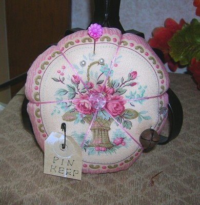 Title (ebay affiliate link): Primitive ROSE Basket Pinkeep Country Shabby Pin Cushion Home Decor