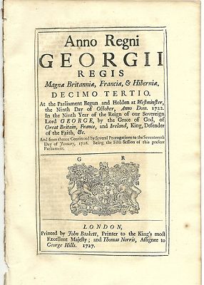 Title (ebay affiliate link): RARE English 1727 "ACT OF PARLIAMENT" King George II 1727