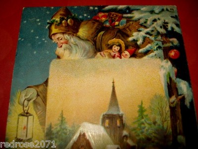Title (ebay affiliate link): VINTAGE OLD holiday CHRISTMAS postcard SANTA CLAUS Brown Robe / Coat TOYS CHURCH