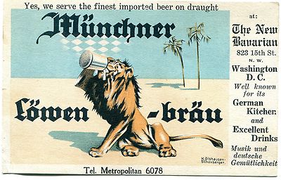 1910s Lowen brau Beer on Draugh at The New Bavarian Restaurant Washington DC A+