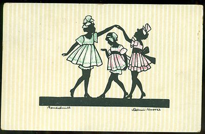 MANNI GROSZE Art Deco Silhouette Artist Postcard Girl Trio Dancing