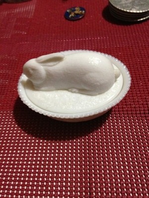 Title (ebay affiliate link): rare VTG ANTIQUE McKee white milk glass butter dish BUNNY RABBIT SIGNED EAPG DG